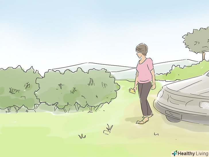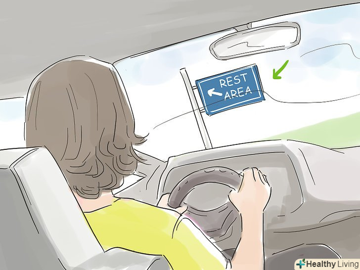 Зупиніться біля зони відпочинку. як тільки ви знайдете найближчу зупинку, паркуйте автомобіль і вийдіть. Походіть, розімніть ноги, пофотографуйтеся, якщо навколо мальовничий пейзаж. Або можна відразу попрямувати до вбиральні.- У багатьох зонах відпочинку є торгові автомати, зона для тварин, кава і навіть іноді Безкоштовний wifi. [17]