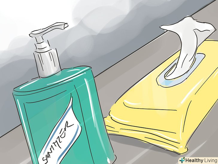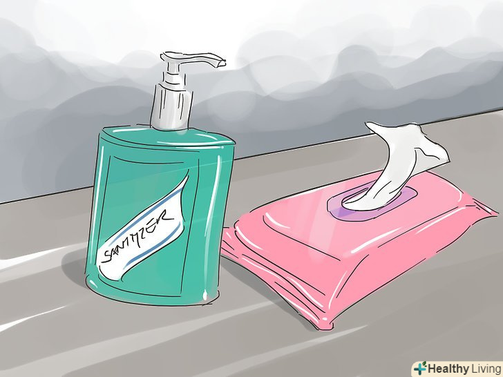 Візьміть з собою гігієнічні приналежності. Просто про всяк випадок, якщо раптом в зоні відпочинку не буде води і мила — до такого теж потрібно бути готовим. Антисептик для рук або дитячі серветки, які можна взяти з собою — швидке і просте рішення. [14]- Антисептик для рук і дитячі серветки можна купити в супермаркеті і аптеці. Якщо ви не хочете купувати велику упаковку, можна купити дорожній варіант.