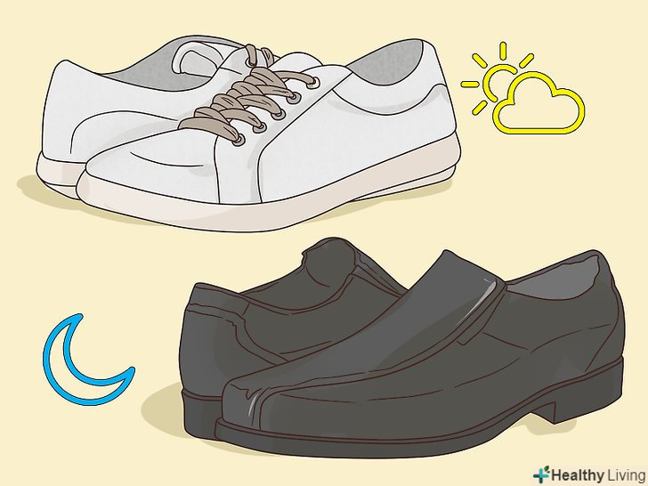Упакуйте по одній парі вечірнього взуття та взуття на денний час. щоб заощадити додатковий простір, одягніть денне взуття в перший день в дорогу. Якщо ввечері намічається більш офіційний захід, упакуйте ошатну взуття, наприклад туфлі на підборах, якщо ви — жінка, або класичні туфлі, якщо ви — чоловік. Денне взуття можна надіти на наступний день в дорогу. [1]