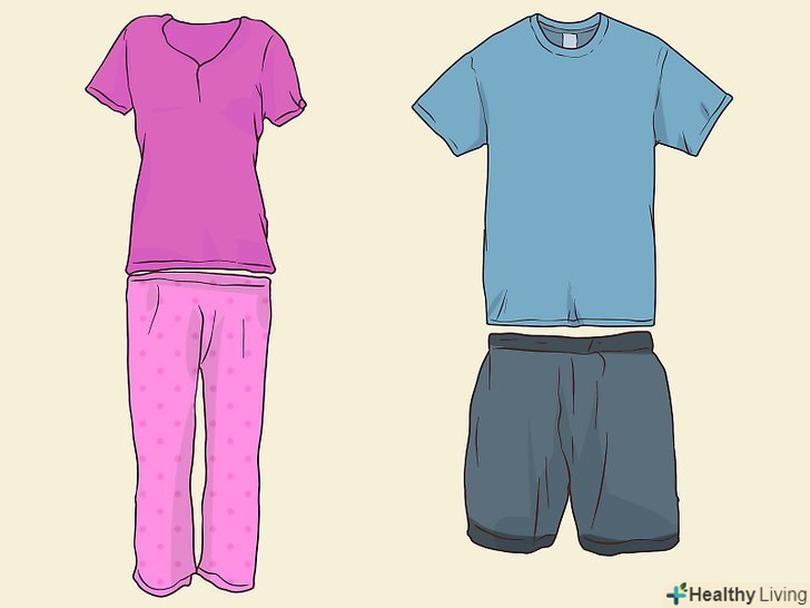 Зробіть вибір на користь легкої піжами. візьміть з собою сорочку з довгими рукавами і штани, якщо в пункті призначення буде прохолодно, або виберіть що-небудь менше і тонше, наприклад, нічну сорочку або футболку і широкі труси. Це дозволить заощадити місце в сумці і не потіти під час сну. [2]