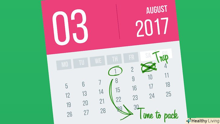 Заздалегідь збирайте речі для своєї поїздки. збори в останню хвилину викликають стрес, і, швидше за все, ви візьмете непотрібні речі, якщо будете упаковувати валізу напередодні поїздки. Почніть збиратися принаймні за три дні до від'їзду, щоб залишився час обміркувати речі, які потрібно захопити.