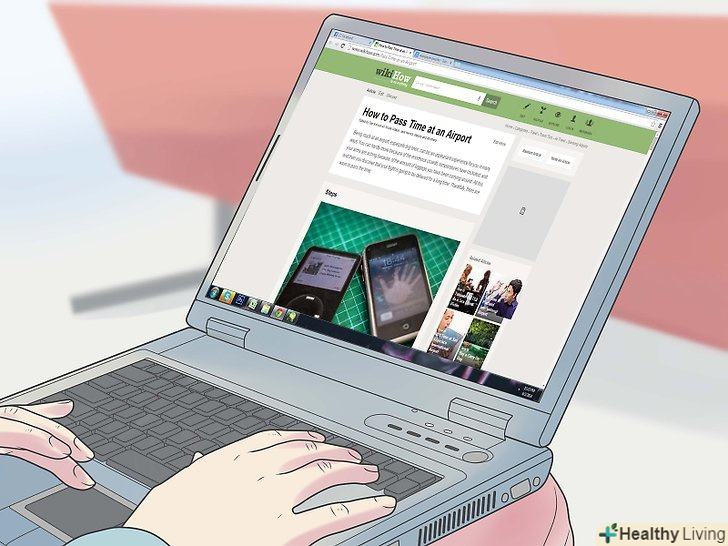 Посидьте в Інтернеті . зазвичай Інтернет є у всіх аеропортах, хоча він може бути не дуже дешевим. Якщо у вас є трохи грошей, з Інтернетом час може пролетіти непомітно. Чому б вам не перевірити свою електронну пошту або пограти в ігри? Ви навіть можете в цей час зробити свій внесок у wikiHow! Якщо ви подорожуєте з дітьми, дозвольте їм теж пограти в ігри, так як це їх займе на деякий час, і вони відпочинуть перед перельотом. [3]