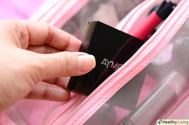 Якщо ви використовуєте косметику: складіть все в пакет, ємністю 1 л.не беріть з собою багато косметики, і не забувайте про правило про 100 мл. постарайтеся не брати занадто багато коштів.
