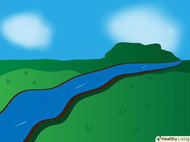 Знайдіть воду. по порядку, ви втрачені в помірних умовах рано вранці, найгіршим буде незнання місця розташування. Це не проблема. Ви не знаєте, де ви, Але ви знаєте, куди потрібно йти-під гору. Все тому, що вода розташовується строго за законами гравітації, а вода вам потрібна через те, що без неї ви не виживете довше трьох днів. Рухайтеся до нижчої точки, яку тільки зможете виявити.