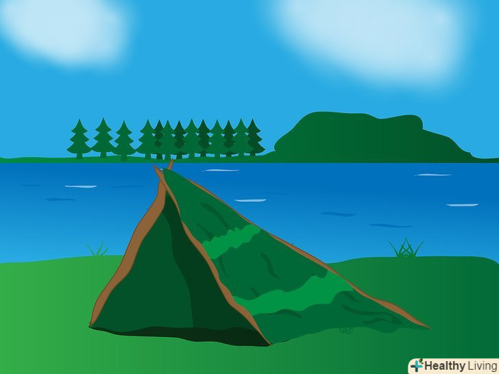 Побудуйте притулок. у звичайних умовах, притулок необхідністю не є. Однак, якщо воно вам потрібно або ж ви побоюєтеся дощу, головне для притулку — невеликий розмір, сухість і відсутність відкритої землі. Ніколи не витрачайте час на будівництво невеликих хатин або притулків більше вашого тіла. Це буде витратою енергії і ресурсів, плюс, тепло легше зберігати в маленькому приміщенні. Добре показують себе великі пласти моху, якими вкривається невелика дерев'яна основа. Хорошим покриттям для даху також є березова кора. Однак найкращим варіантом залишається використання величезної кількості м'якої деревини і папороті. Якщо ви будете розторопні, то зможете назбирати досить для 15 см шару, який як захистить від дощу, так і збереже тепло. Сухе листя також відмінно працює в якості водовідштовхувального матеріалу. Якщо ви очікуєте дощу, зробіть шар з листя і чого б то не було, як можна більш товстого. (товщина в 1 метр-майже водонепроникна). Витративши дві години можна поспати не тільки зручно, але і в сухості і теплі.