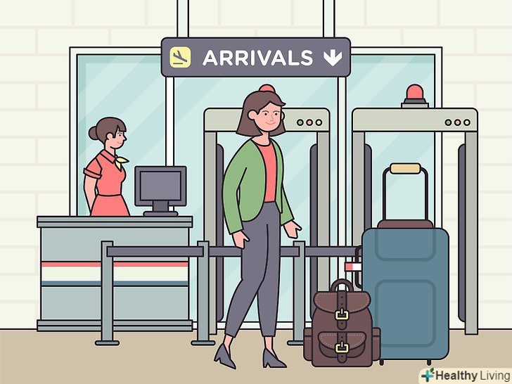 Приготуйте відповідні контейнери і пакети з грипперами (з застібкою типу ЗІП-лок), щоб швидше пройти перевірку в аеропорту. майже у всіх промтоварних магазинах можна купити пляшечки об'ємом 50 мл, щоб розфасувати в них шампунь, рідке мило та інші косметичні засоби. Дуже може бути, що в магазині знайдеться секція для мандрівників, де представлені товари в дорогу відповідної ваги і обсягу, наприклад, зубна паста або лосьйон, які можуть вам знадобитися в польоті або відразу ж після приземлення. Щоб не доплачувати, зважте будинку багаж і переконайтеся, що вага не перевищує допустимий. [7]- Не беріть з собою в ручну поклажу те, що можна прийняти за зброю, наприклад бритви або ножиці.
