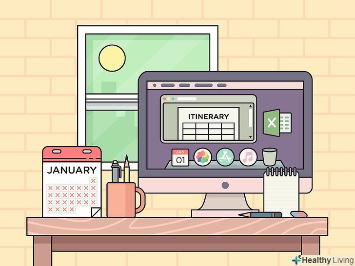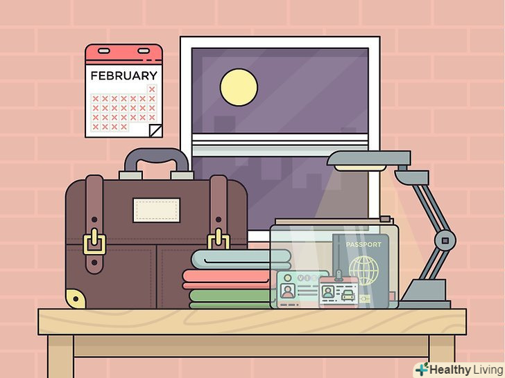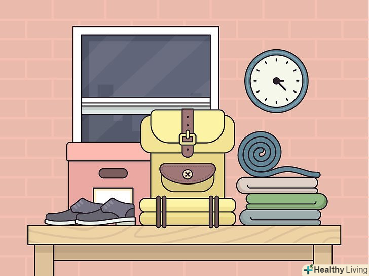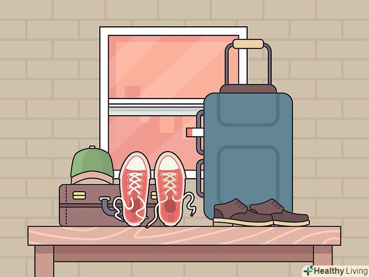 Почніть збиратися заздалегідь, щоб не впасти в паніку в останній вечір перед від'їздом. Таким чином, у вас залишиться час на похід по магазинах, якщо потрібно щось прикупити в дорогу. Якщо протягом тижня всі предмети, які ви плануєте упакувати, будуть у вас перед очима, то ви зможете навіть відмовитися від чогось, щоб заощадити місце у валізах. [9]- Почніть складати список речей за тиждень до від'їзду. Так ви гарантовано не забудете нічого важливого, і протягом тижня список можна поповнювати. Запишіть речі, якими Ви користуєтеся щодня, ймовірно, вони теж вам знадобляться в поїздці.