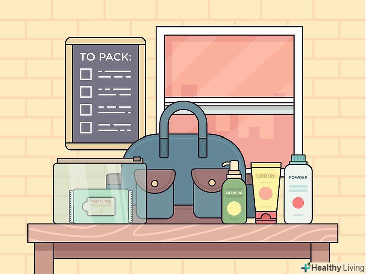 Не беріть багато туалетного приладдя. такі речі, як зубна паста, шампунь, мило і велика частина засобів швидкої медичної допомоги, швидше за все, можна купити там, куди ви їдете. Тому, якщо у вас взагалі немає місця, заплануйте похід в аптеку по прибуттю. Іноді можна отримати задоволення від абсолютно простих речей, таких, як відвідування місцевого ринку для покупки зробленого вручну масла ши, яким можна замінити ваш звичний лосьйон для тіла. Однак якщо ви плануєте це зробити, важливо заздалегідь дізнатися, чи зможете ви знайти все необхідне. Якщо ваш пункт призначення-віддалений район на Алясці, а ви вирішили, що купите зубну щітку на місці, то це будуть, ймовірно, неприємні два тижні. [13]- Будьте готовим до того, що товари за кордоном можуть не бути такими, до яких ви звикли, але пробувати щось нове-теж задоволення.
