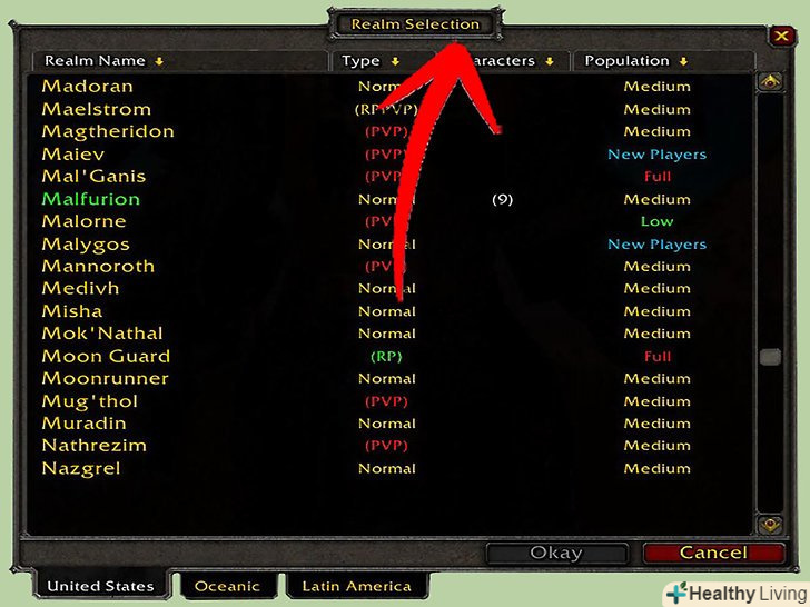 Виберіть сервер.до того, як ви почнете грати, ви повинні вибрати ігровий сервер (реалм). Ігрові сервера визначають стиль вашої майбутньої гри.- PvE (ПвЕ): Гравець проти оточення (Player vs Environment), хороший варіант для початківців грати. Ви можете сфокусуватися тільки на ваших рівнях, і приділяти менше уваги грі в групі.
