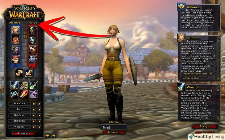 Створіть свого персонажа.збудлива частина початку вашої гри-це створення персонажа, ви зможете вибрати з 10 рас і 9 класів. Кожен клас має певні бонуси. Постарайтеся вибирати не тільки за зовнішнім виглядом, але і за характеристиками КЛАСІВ.- Виберете фракцію. Ваша фракція, по суті, визначить раси, які ви зможете вибрати.