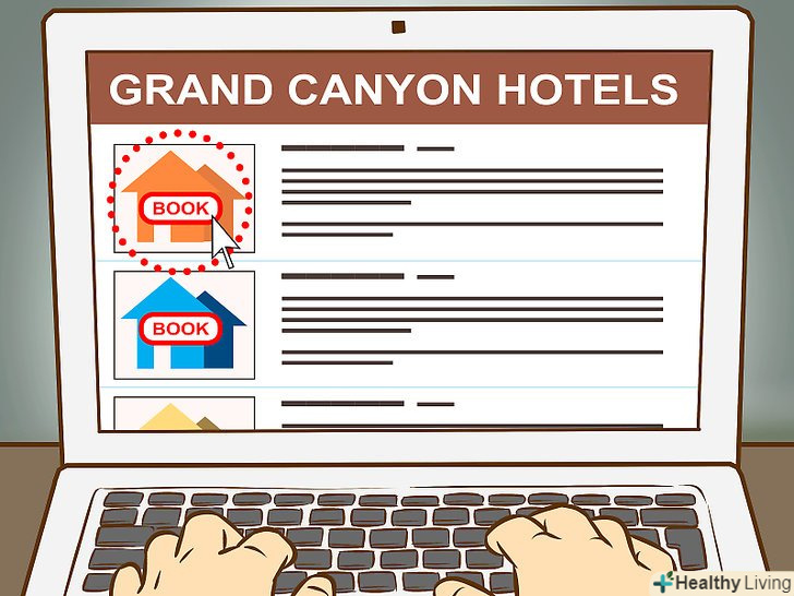 Бронюйте все заздалегідь. забронюйте всі всі можливі елементи подорожі наперед: авіаквитки, Оренда автомобілів, готелі, екскурсії, шоу в Лас-Вегасі, столик в ресторані (в деяких закладах це необхідно). Номер в готелях Гранд-Каньйону, як правило, слід замовляти від півроку до року вперед, особливо, якщо відпустка потрапляє на сезон подорожей. На кемпінги попит трохи нижче. Бронювання готелю або кемпінгу є найважливішим моментом у плануванні вашої подорожі.- Вирішили бронювати по телефону? Будьте настирливі і не зупиняйтеся, якщо не додзвонилися з першої спроби. Лінії часто бувають зайняті, тому тисніть на клавішу повторного набору і чекайте коли вам дадуть відповідь.