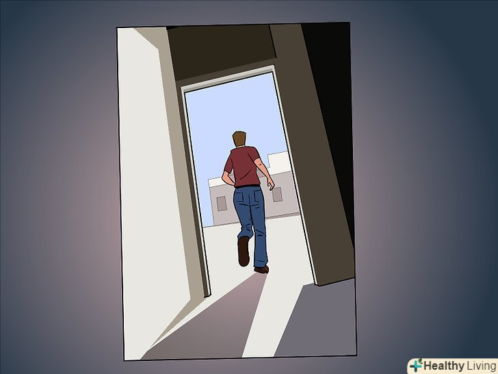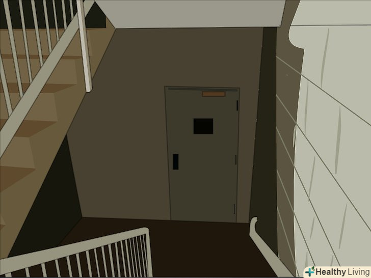 - Якщо ви знаєте, що двері на сходовий майданчик за вами закриється, закривши вас на сходовому проході в тому випадку, якщо у вас не вийде дістатися до виходу на першому поверсі, постарайтеся підкласти що-небудь під двері, щоб вона не закрилася. Таким чином, у вас, принаймні, буде шанс повернутися в свій номер, якщо ви виявите, що не зможете вибратися через сходи. Не забувайте, що інші люди також намагатимуться покинути будівлю, і немає гарантії, що коли ви повернетеся, після метушні двері залишиться відкритою.