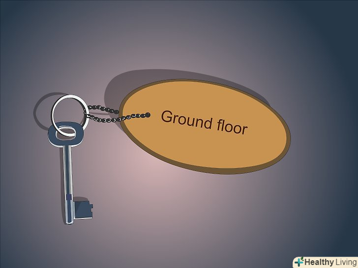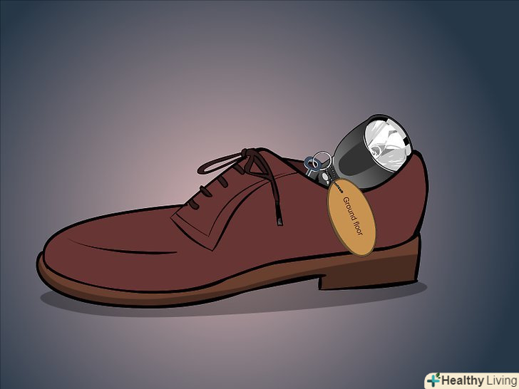 Перед сном кладіть ключі від номера і ліхтарик собі в взуття. якщо вам доведеться покинути приміщення під час пожежі, з собою обов'язково знадобиться взяти ключі і ліхтарик. Так як ви не хочете витрачати час на те, щоб одягнутися і зібратися, ви взуєтеся і відразу ж візьмете ці необхідні речі. Зберігайте їх разом, і тоді ви нічого не забудете.- Якщо у Вашому готелі різні ключі підходять до різних дверей, переконайтеся, що Ви знаєте, який з них і куди підходить. При необхідності позначте їх як-небудь.