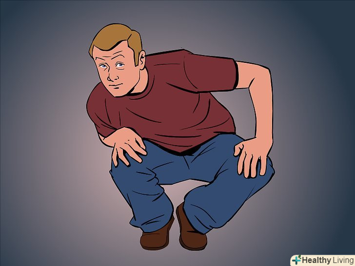 Пересуваєтеся, нагинайтеся близько до підлоги. як тільки ви помітили ознаки пожежі (включаючи сигнал вашого індикатора диму або пожежної сигналізації), намагайтеся триматися близько до підлоги. Ви можете не помітити дим відразу, але навіть невелика його кількість може обмежити вашу дієздатність. Краще пригнутися до підлоги: дим і тепло піднімаються вгору, а внизу їх буде менше.
