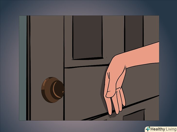Доторкніться до дверей задньою частиною вашої кисті. не відкривайте її, попередньо не помацавши. Зовнішня частина вашої руки дуже чутлива до тепла, і використовуючи її, ви не ризикуєте обпалити свою долоню або кінчики пальців. Якщо двері або ручка гаряча, ймовірно, вогонь прямо за нею. В такому випадку не відкривайте двері.- Навіть якщо двері не гарячі, будьте готові швидко закрити його, якщо це потрібно. Повільно відкрийте двері, напружуючи руку. Під тиском полум'я двері можуть сама відчинитися, якщо не тримати її, як слід. [1]