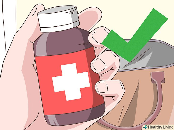 Якщо без ручної поклажі не обійтися, візьміть її. складіть все необхідне: білизна, взуття, один-два комплекти одягу, речі для розваги, ліки, а якщо переліт буде довгим, то ще й базовий набір косметичних засобів. Деякі люди збирають ручну поклажу так, немов ніколи не отримають свій основний багаж, і беруть занадто багато всього. Складіть в ручну поклажу мінімум, який дозволить вам протриматися пару днів, якщо ваш багаж загубиться.- Візьміть з собою препарати і все, що вам потрібно для зручності. У літак можна брати як препарати, які продаються без рецепта, так і ті, які купуються за рецептом. Якщо вам потрібно мати на борту рідини медичного призначення (наприклад, фізрозчин), їх можна буде пронести.