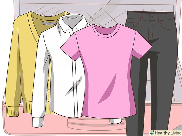 - Щоб не брати занадто багато одягу, виберіть речі, які можна носити один з одним. Беріть кілька речей, які добре поєднуються один з одним. Складіть кілька аксесуарів. Наприклад, шарфи займають мало місця, і їх можна носити на шиї, на голові або навіть замість ременя.