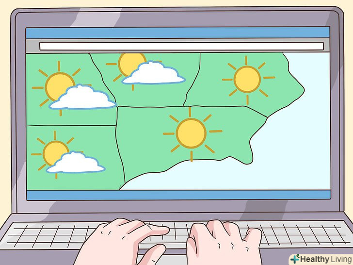 Дізнайтеся прогноз погоди. це дозволить зрозуміти, які речі варто брати з собою. Наприклад, в деяких регіонах влітку буває не дуже жарко, але при цьому можливі короткі періоди сильної спеки. Якщо ви вивчите прогноз заздалегідь, ви будете знати, що вам варто скласти: відкритий топ або парасольку.- Візьміть невелику кількість універсальних речей, які можна було б використовувати при тій погоді, яка очікується. Наприклад, одна непромокаюча вітровка займає менше місця, ніж дощовик і куртка.
