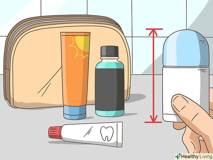 Подумайте, чи дійсно вам потрібні всі косметичні засоби. напевно у вашої тітки, у якої Ви будете жити, є шампунь, а зубну пасту напевно можна купити і в Перу. Можливо, вам доведеться витратити час на ці покупки, але зате вам не потрібно буде везти з собою купу пляшечок і тюбиків, завдяки чому у вас залишиться місце для більш важливих речей.- Якщо вирішите брати з собою косметичні засоби, пам'ятайте, що на борт можна пронести не більше літра рідин, які поміщаються в ємності не більше 100 мілілітрів кожна. При цьому всі ємності повинні входити в один пластиковий пакет об'ємом літр (ці пакети іноді видають при огляді багажу). [2] Вивчіть правила, які діють в аеропорту вильоту.