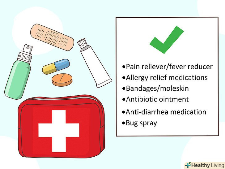 Тримайте при собі аптечку. найважливіше взяти з собою болезаспокійливі засоби. Іноді на борту може боліти голова, тому вам буде потрібно ліки від болю. Складіть наступні речі:- Болезаспокійливі;
