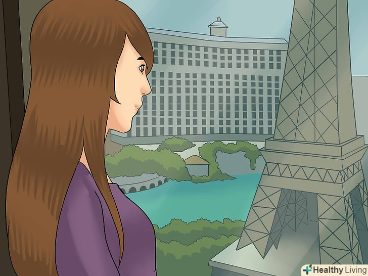Сходіть в готель «Париж» і подивіться на Ейфелеву вежу. цей готель відомий своїм шикарним лобі, що імітує вулички в столиці Парижа. Випийте каву у французькій кав'ярні і подивіться на Ейфелеву вежу-вона є копією вежі в Парижі, зменшеною в два рази. [13]- Як і в справжній Ейфелевій вежі, там можна піднятися на ліфті на оглядовий майданчик за 20 доларів.