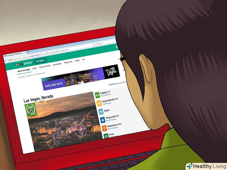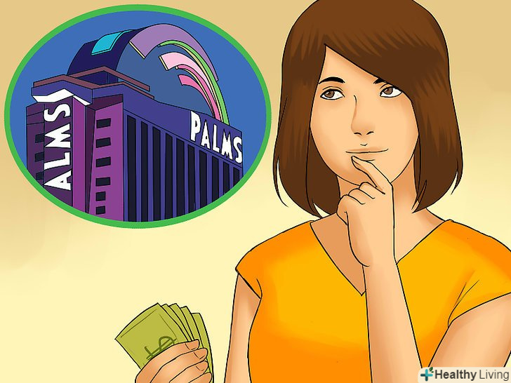 Вирішіть, в якій частині Лас-Вегаса ви хочете зупинитися. Лас-Вегас-Стрип — це найпопулярніша частина міста, що відображає всю його суть, але і в інших частинах міста може бути цікаво. На околицях житло буде дешевше, але вам доведеться довше добиратися до основних визначних пам'яток. [4]- Більшість мандрівників вважає за краще зупинятися в районі Лас-Вегас-Стріп, тому там ціни будуть значно вище. Якщо не хочете переплачувати за житло, оселіться на околиці і вирушайте на Лас-Вегас-Стріп вдень.