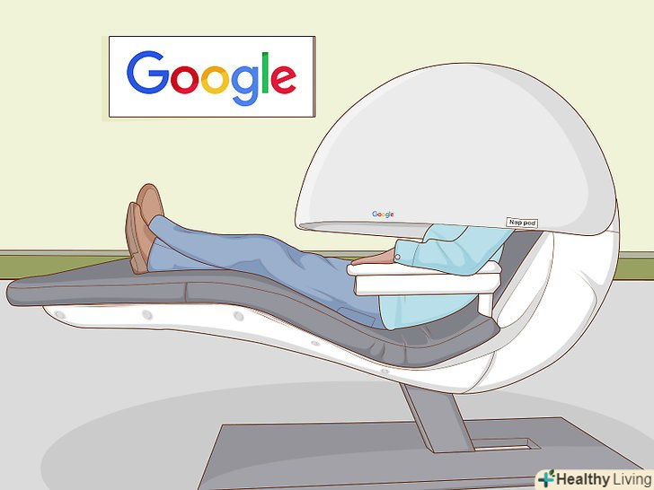Помилуйтеся на крісла для денного сну. попросіть свого гіда показати вам пристосування для денного сну, які є в багатьох будівлях на території Googleplex. Це спеціально спроектовані крісла з ковпаком, який глушить зовнішні шуми. У таких кріслах співробітники компанії можуть подрімати або просто попрацювати в спокійній обстановці. У крісла вбудована музична система Bose і таймер, який розбудить вас в певний час. [17]- Крісла для денного сну були розроблені компанією MetroNaps із застосуванням технологій NASA.