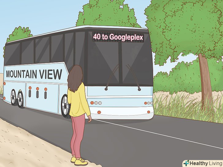 На поїзді і автобусі. у місті Маунтін-В'ю до кампуса Googleplex ходять міські автобуси № 32 і № 40. Обидва автобуси відправляються від залізничної станції San Antonio, куди приходять поїзди Caltrain з Сан-Франциско, Сан-Хосе і південній частині затоки Сан-Франциско. [2]- Щоб заощадити час і гроші, на ці види транспорту можна купити добовий проїзний квиток.