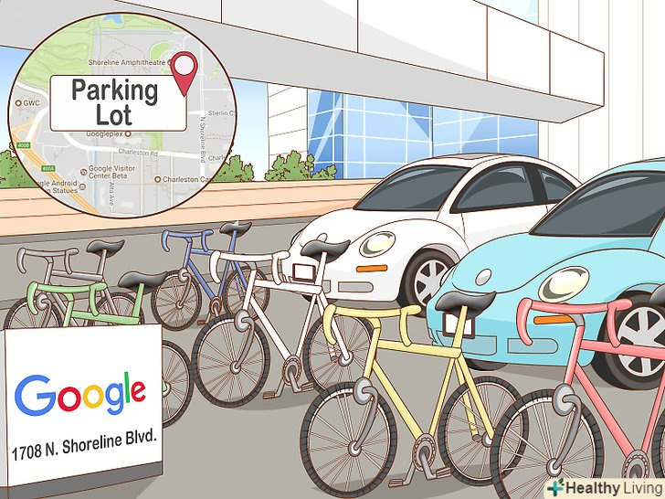Прогуляйтеся по кампусу. у більшість будівель Google вхід для сторонньої публіки закритий, однак і зовні є на що подивитися. Ходити пішки доведеться багато, адже кампус Google розкинувся на кілька гектарів. Щоб не забути, що ви вже оглянули, а що ні, постарайтеся запам'ятовувати особливо помітні орієнтири і пам'ятки. [5]- Наприклад, звертайте увагу на таблички з адресами на стінах будівель, а також скульптури біля входу.