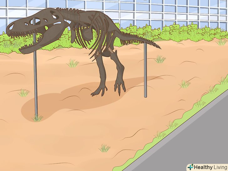 Огляньте статую тиранозавра. повнорозмірна статуя тиранозавра, яку встановили на кампусі засновники Google Сергій Брін і Ларрі Пейдж, служить нагадуванням: хто не еволюціонує, той вимре, як динозаври. Включіть цю пам'ятку в свій піший тур по кампусу Google. Тиранозавр, якого співробітники компанії звуть стен, стоїть біля центрального комплексу Google. [7]- Співробітники Google люблять прикрашати "Стена" іграшковими фламінго.