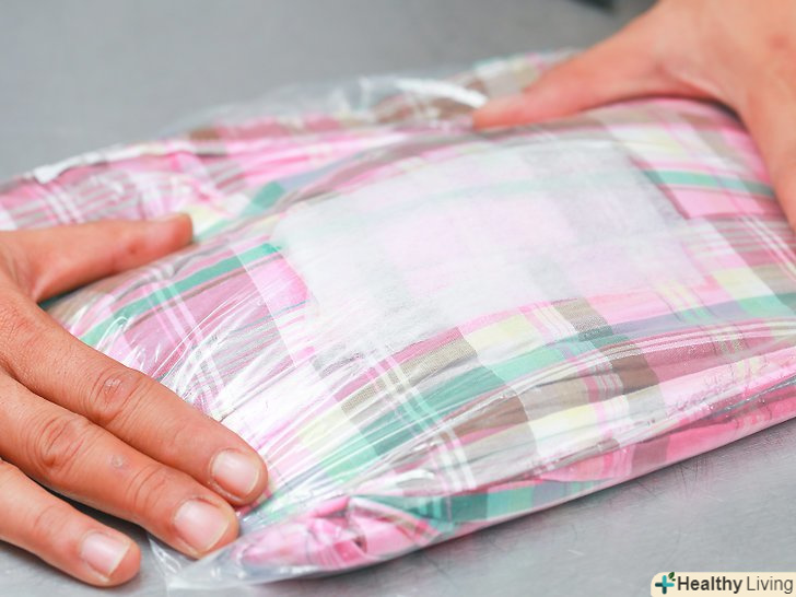 Складіть речі у вакуумні пакети. [15] можна поміщати речі в звичайні пакети на застібці, які не пропускають повітря, або в пакети, звідки можна викачати повітря за допомогою пилососа. Такі пакети продаються наборами по 2, 4 або 8 штук. Зі звичайних пакетів виганяти повітря потрібно вручну.