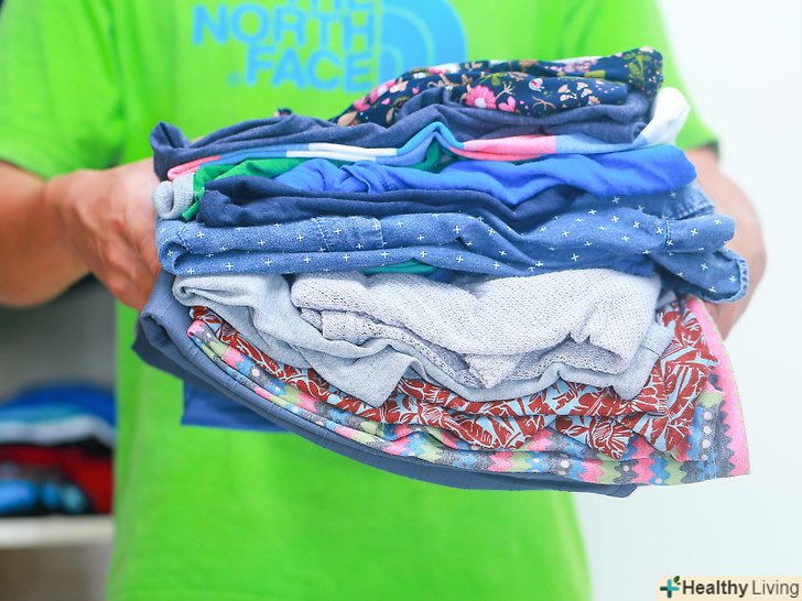 Скористайтеся пристосуванням, яке дозволяє акуратно складати одяг. Чи будете ви використовувати пакети чи ні, вся ваша одяг повинна бути складена однаково. Якщо просто скинути речі в сумку, вони займуть більше місця і помнуться. Складіть речі акуратно, а потім покладіть один на одного — так вони займуть менше місця. [16]