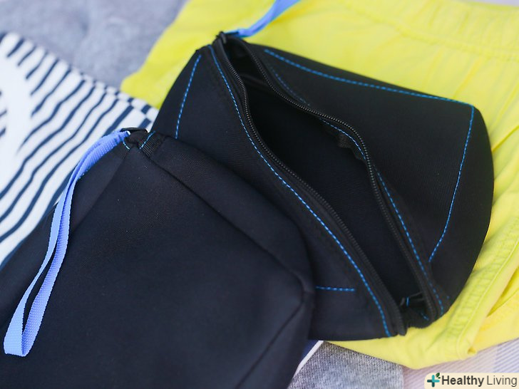 Подумайте, які туалетні приналежності вам потрібні. беріть з собою якомога менше всього і залишайте все зайве вдома. Туалетні приналежності займають місце в сумці і можуть додати зайвих кілограмів. Беріть з собою мініатюрні упаковки кремів, дезодоранту, перелийте шампунь та інші засоби в маленькі пляшечки. Косметика іноді теж продається в упаковці (наприклад, туш і помада). [5]- Пам'ятайте, що деякі приналежності вже будуть приготовані для вас в готелі. У готелях зазвичай є гель для душу і шампунь. Якщо цього там не буде, ви зможете купити їх, а також зубну пасту, бритву і гель для гоління в будь-якій аптеці або магазині. [6]