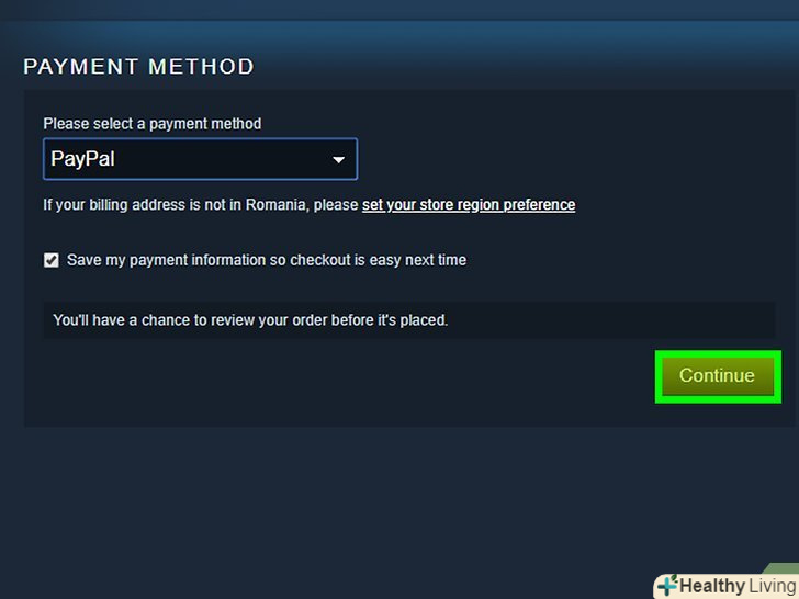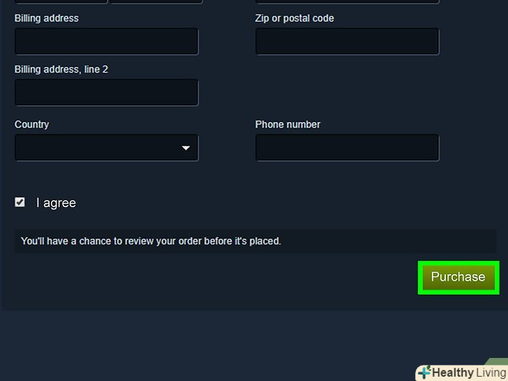 Введіть платіжні дані (якщо необхідно).якщо вас попросять ввести номер банківської картки, ім'я та іншу інформацію, зробіть це.- Якщо в Steam зберігаються ваші платіжні дані, пропустіть цей крок.