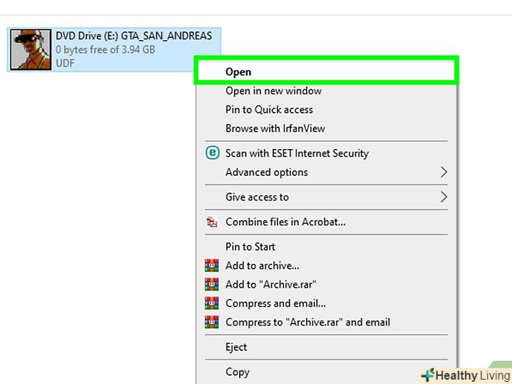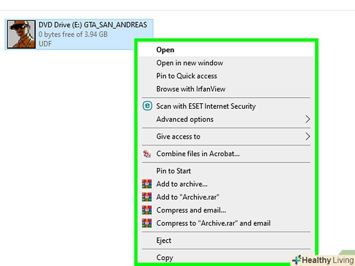 Клацніть правою кнопкою миші на компакт-диску з диском гри. він знаходиться в розділі «Пристрої та диски» вікна «цей комп'ютер". Розкриється меню.