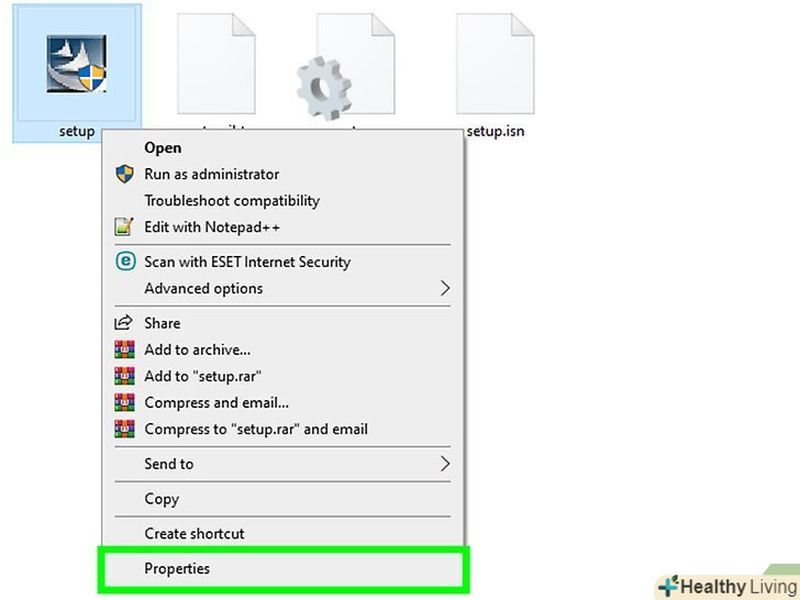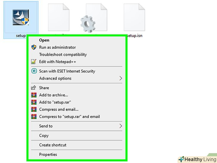 Клацніть правою кнопкою миші по виділеному установчому файлу.розкриється меню.- Якщо правою кнопкою клацнути по файлу, який не виділений, відкриється інше меню.