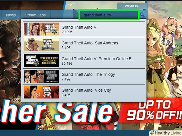 Знайдіть гру Grand Theft Auto. для цього введіть grand theft auto у рядку пошуку.