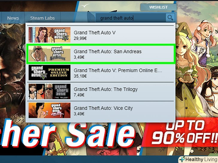 - Знайдіть Grand Theft Auto San Andreas. введіть Grand Theft Auto San Andreas. Повинен відобразитися тільки один результат пошуку - »San Andreas".