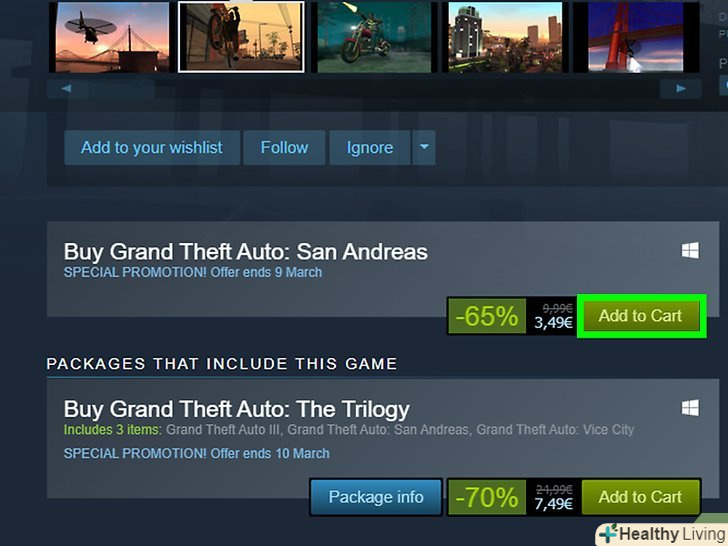 Прокрутіть вниз і натиснітьВ кошик.це опція праворуч від " купити Grand Theft Auto: San Andreas».