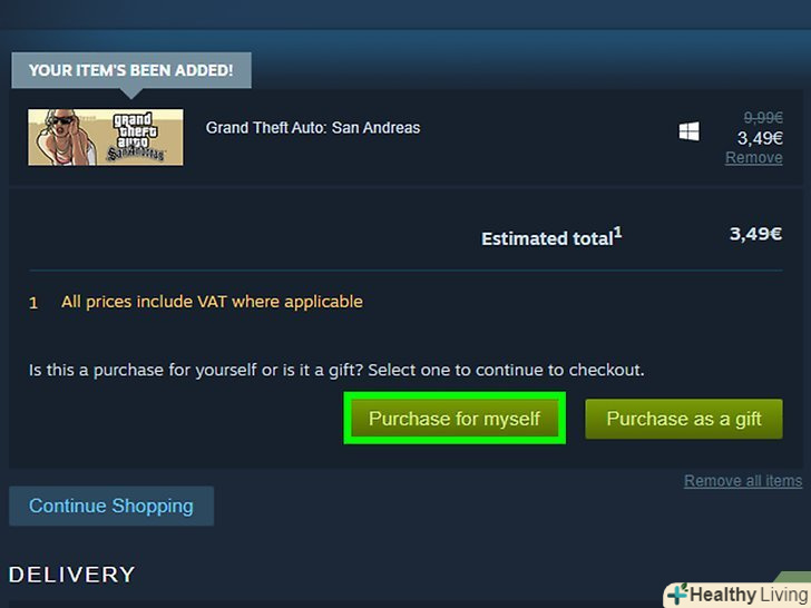 Клацніть поКупити. це опція внизу сторінки. Так ви купите гру Grand Theft Auto: San Andreas, а вона завантажиться на комп'ютер.- Час завантаження GTA: SA буде залежати від швидкості підключення до Інтернету.