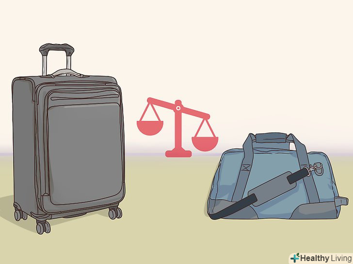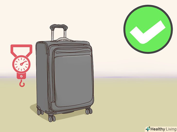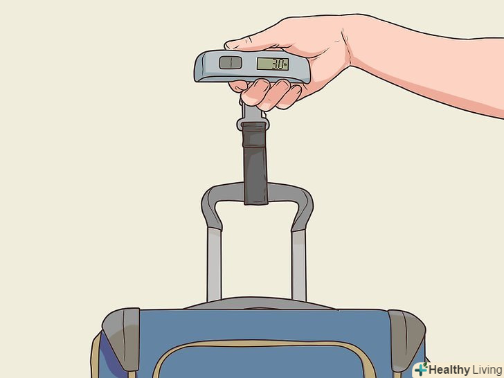 Зважте валізу на вагах. у всіх авіакомпаній є обмеження по вазі для ручної поклажі і здається багажу. Майте на увазі, що ваш чемодан сам по собі скільки-то важить, навіть коли він порожній. Якщо у вас вдома є ваги, зважте валізу після того, як ви його повністю упакували. Тоді вам не доведеться платити неприємні багажні збори або викидати частину речей в аеропорту. [6]