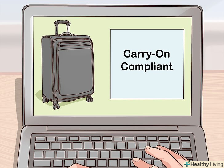 Двічі перевірте розміри валізи. багато продавців заявляють, що той чи валізу «підходить для перевезення в ручній поклажі». Вони також вказують його розміри, які виглядають придатними для перевезення в ручній поклажі в більшості авіакомпаній. Але завжди кращим рішенням буде перестрахуватися і виміряти валізу самостійно. У різних авіакомпаній різні вимоги, а вказувані продавцями розміри не завжди бувають точні. [3]