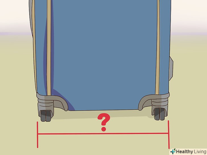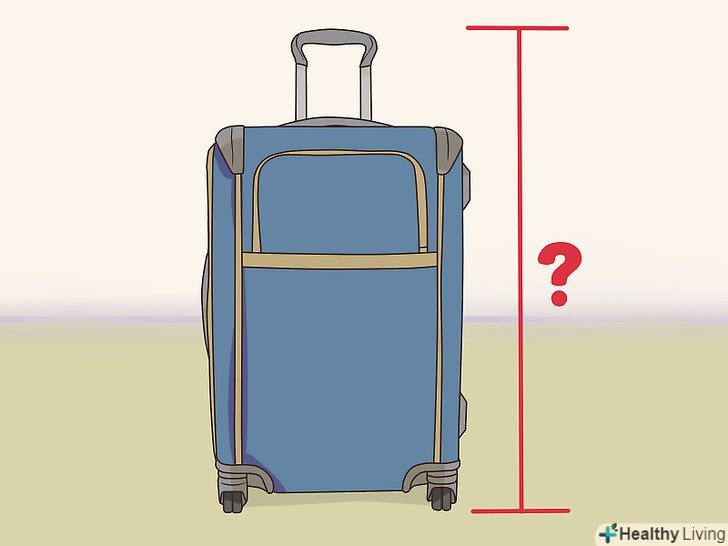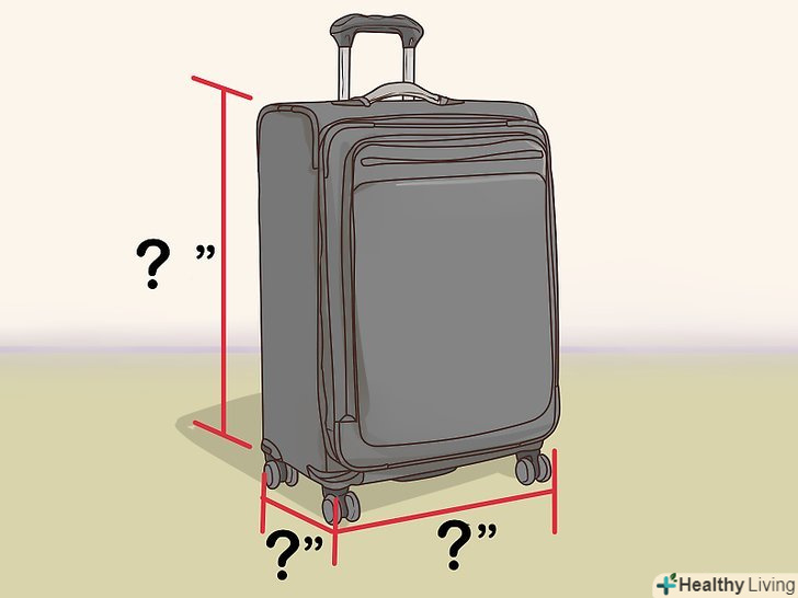 Визначте суму трьох вимірів вашої валізи. через те, що валізи і сумки бувають дуже різних форм і розмірів, деякі авіакомпанії просто вказують суму трьох вимірювань в сантиметрах (американські авіакомпанії іноді використовують дюйми), менше якої повинен бути ваш чемодан. Щоб визначити її, виміряйте висоту, глибину і ширину вашого валізи, включаючи ручки і коліщатка. Потім складіть три отримані числа. Ця сума і буде сумою трьох вимірів вашої валізи. [4]