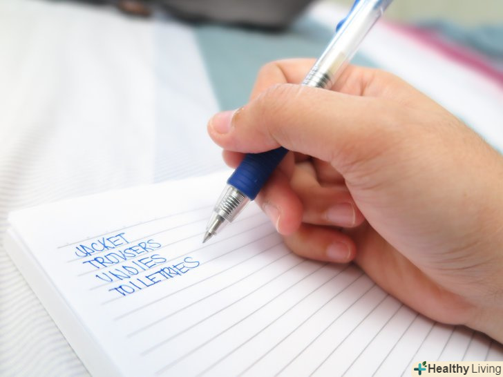 Складіть список речей. складіть розширений список всіх речей, які вам можуть знадобитися в подорожі. Продумайте все що вам знадобиться: речі, туалетні приналежності, купальний костюм, Діловий одяг, нестаціонарне обладнання, розваги, Електроніка. Потім подивіться на цей список більш розважливо і вирішите, що зі списку, дійсно "необхідно" для подорожі, а що "просто про всяк випадок". Викресліть речі не першої необхідності, тому що з собою ви їх брати не будете. [2]- Запам'ятайте, якщо ви тільки не їдете в Антарктику або пустелю Сахара, ви скрізь зможете в разі необхідності докупити потрібні речі.