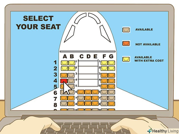 Виберіть місце. багато авіакомпаній дозволяють вибирати місце під час бронювання. Переконайтеся, що ви вибрали місця для всіх пасажирів, яким бронюєте квитки на рейс. Можна вибрати місця разом (якщо потрібну кількість місць вільно) або місце біля проходу, біля вікна або по центру. Ви також можете доплатити за місце, де, наприклад, є додатковий простір для ніг.- Якщо авіакомпанія не дозволяє вибирати місце під час бронювання, можливо, ви зможете зробити це при реєстрації. Якщо ви віддаєте перевагу конкретному місцю або вам потрібно сісти поруч зі своїми попутниками (наприклад, якщо ви подорожуєте з дитиною), зателефонуйте в авіакомпанію, щоб дізнатися, чи можете ви заздалегідь все організувати.