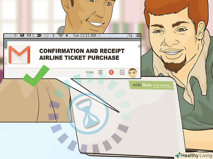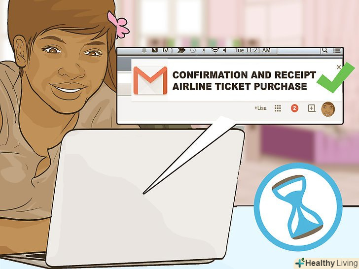 Отримайте квитанцію та підтвердження. Турагент, швидше за все, відправить вам квитанцію і підтвердження про покупку авіаквитка по електронній пошті. Якщо ви не отримаєте електронного листа незабаром після бронювання, зателефонуйте в турагентство. Ви також можете запросити квитанцію і підтвердження в паперовому вигляді, якщо у вас немає доступу до електронної пошти.- Збережіть підтвердження з електронної пошти в надійній папці, щоб випадково його не видалити. Роздрукуйте лист на випадок, якщо у вас виникнуть технічні труднощі ближче до поїздки.