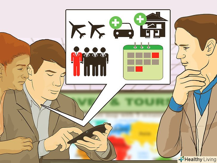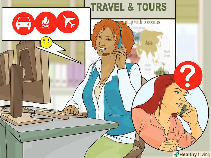Зустріньтеся з турагентом особисто або зв'яжіться по телефону. залежно від компанії ви можете прийти туди особисто або поспілкуватися зі співробітником по телефону. Переконайтеся, що в турагентстві працює Компетентний, доброзичливий і орієнтований на клієнта персонал. Працівники повинні бути в змозі відповісти на всі ваші запитання і мати досвід бронювання поїздок, подібних до вашої.- Заздалегідь підготуйте всі свої питання, бажано на роздрукованому аркуші паперу. Так ви точно нічого не забудете запитати.