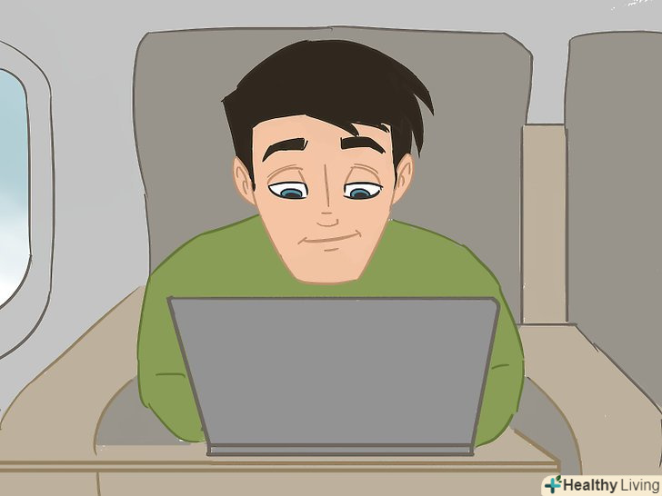 Дивіться фільми. фільми стануть прекрасним вибором завдяки своїй тривалості і захопливості. Деякі авіалінії транслюють фільми на екранах, які вбудовані в спинки сидінь. Також можна взяти свої фільми або підключитися (послугу надають не всі авіакомпанії) до потокового сервісу по мережі Wi-Fi. [3]