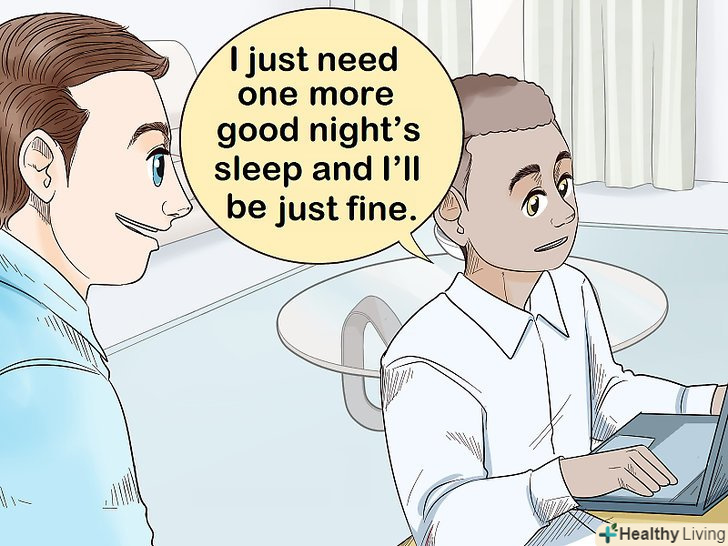 Продовжуйте симулювати хворобу і після повернення на роботу. Не йдіть на роботу після хвороби з абсолютно здоровим виглядом. Робіть вигляд, що до сих пір відчуваєте неприємні наслідки хвороби. Висякайтеся пару раз або покашляйте. Чи не перегравайте і не будуйте з себе мученика, який повернувся на роботу. Не згадуйте про хворобу - якщо співробітники вважатимуть за потрібне, вони самі поцікавляться вашим самопочуттям. Для більшої достовірності можна сказати що — небудь на кшталт: «я дійсно більше не відчуваю себе настільки погано», - або: «Мені потрібна всього одна ніч хорошого сну і все налагодиться».- Якщо хочете виглядати особливо правдоподібно, не варто висипатися напередодні, щоб на роботі виглядати змученим і знеможеним. Це підвищить кредит довіри до вас напередодні наступної вигаданої хвороби. До того ж так у вас буде привід довше не лягати спати.