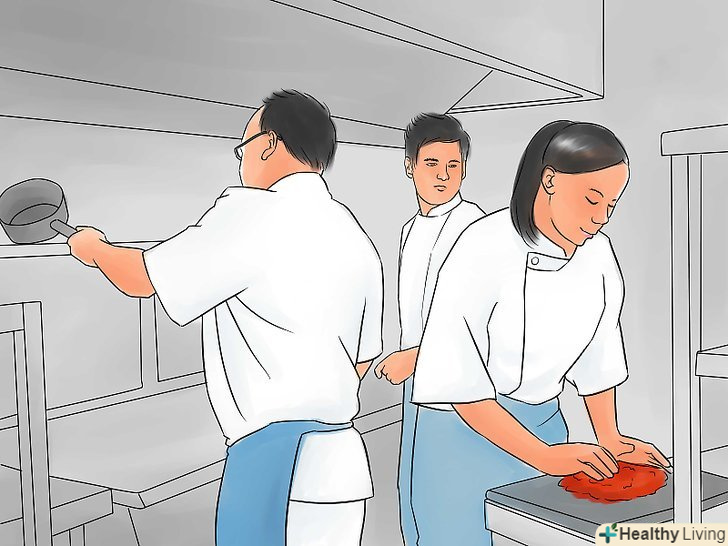 Знайдіть роботу в ресторані. незалежно від того, вчитеся ви в школі або думаєте піти з роботи і присвятити себе кулінарії, перше, що треба зробити - зануритися в роботу ресторану: відчути умови, побачити методи роботи, освоїти обладнання, стикнутися з культурою ресторану.- Перша робота в ресторані необов'язково повинна бути престижною. Спробуйте влаштуватися офіціантом в кафе або в кейтеринг. У ресторанному бізнесі найважливіше досвід, так що починайте його накопичувати якомога швидше.
